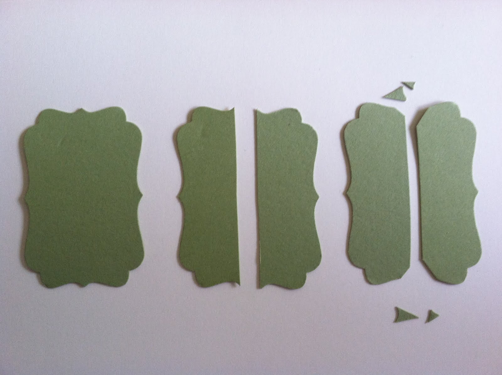 To make the background, take a punch out Pear Pizzaz cardstock with Decorative Label Punch and cut it in half. Cut the little corners off. Adhere to the back of your stamped and punched out image.